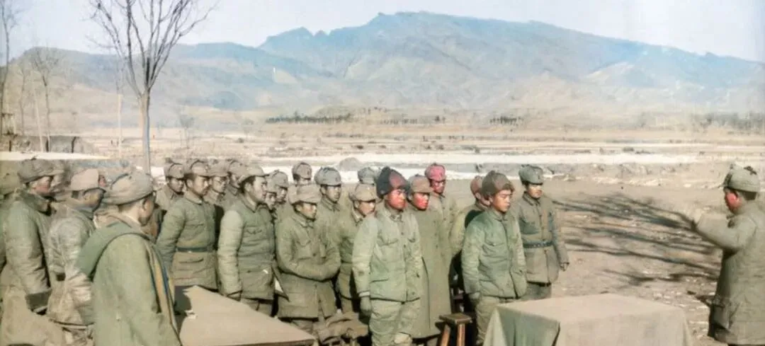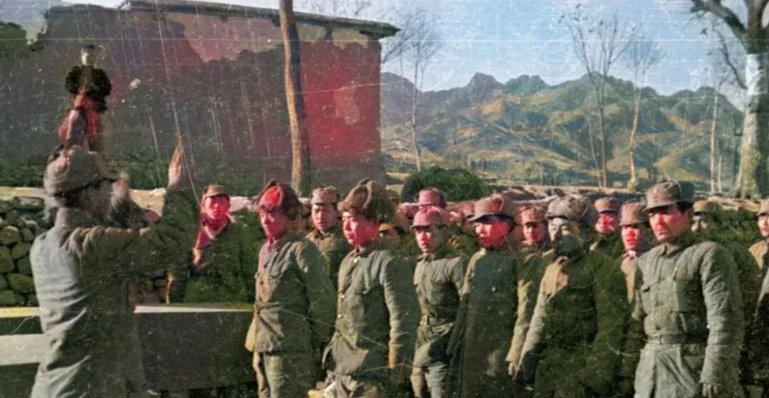 这两张是点名和训练,野地里风大,帽檐被吹得咧开,指挥员的手抬着不落,话一句一句往前压,队伍站得直,脚下是土坷垃,身上呢子军衣起球却暖和,墙侧那排人更紧凑,砖墙后头是厨房,烟囱冒细烟,开了饭就解散,散得快,集合也快,以前集合靠哨子一声,现在靠一条消息,但那时的人更把“集合”当回事。