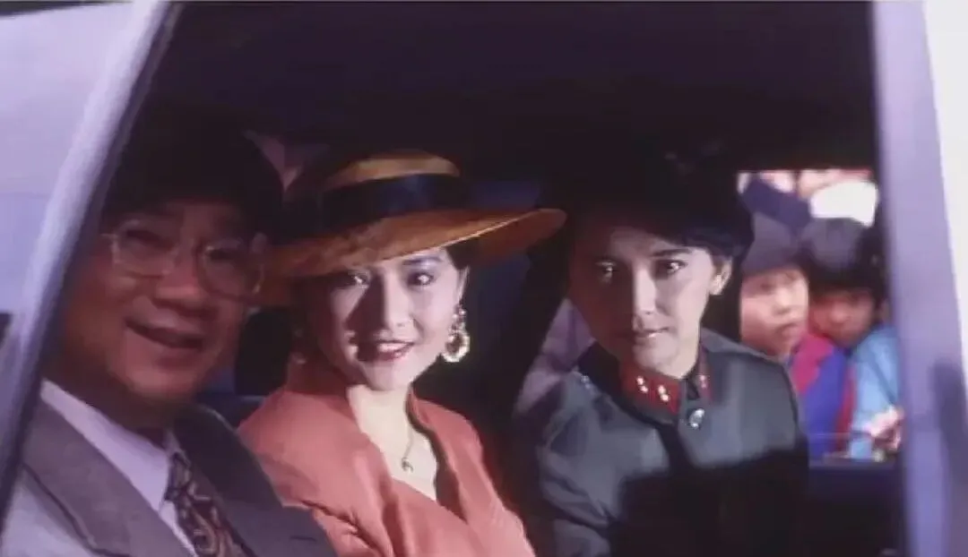 街头三人这张,她站在右边指着远处,旁边两个男孩张着嘴,像见了怪物,她倒冷静,嘴角一抿,下一秒就把人往后拽,跑起来包包还前后甩,那会儿的喜剧动作片真会玩,笑点和打点卡得严丝合缝。