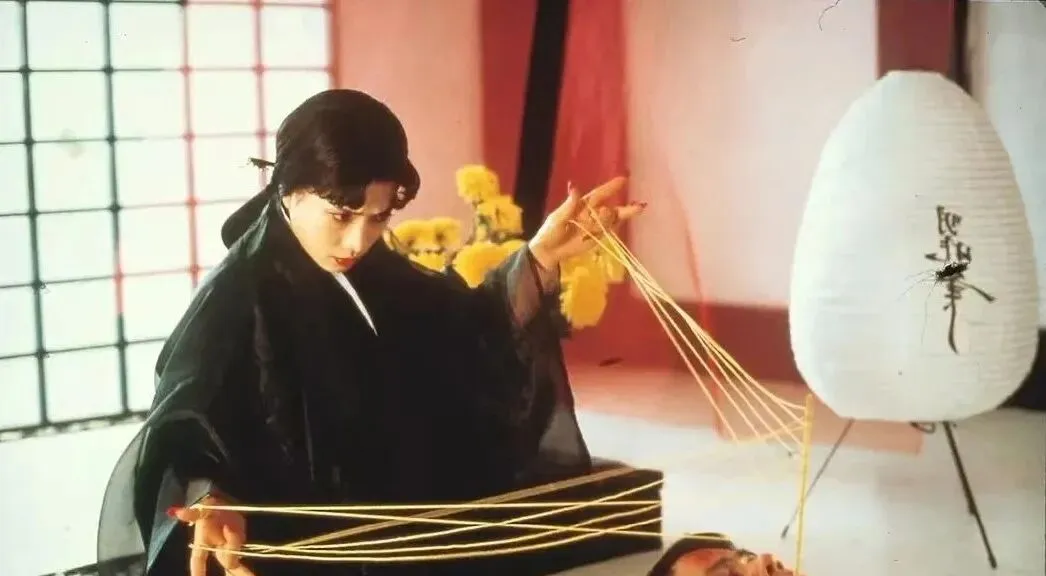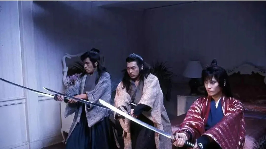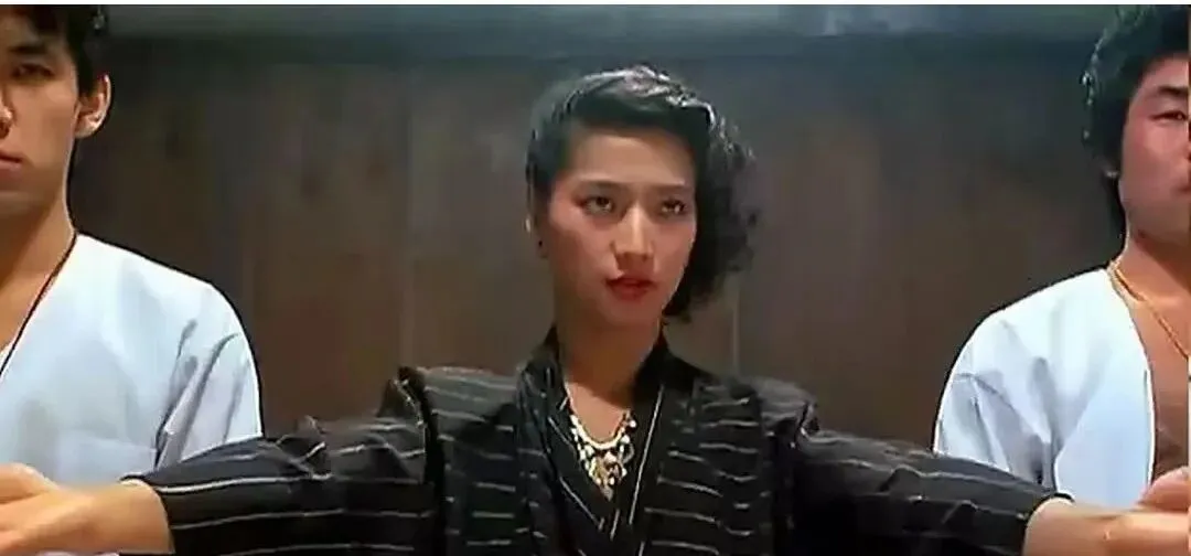 最后这张穿着和风长袍的她握刀站在角落,灯光打在刀脊上一线冷光,她不抢台词,只等对手先出手,然后一个转腕把局面翻过来,这种慢起手快收尾的打法,八九十年代的动作片玩得溜极了,现在回看还是过瘾。