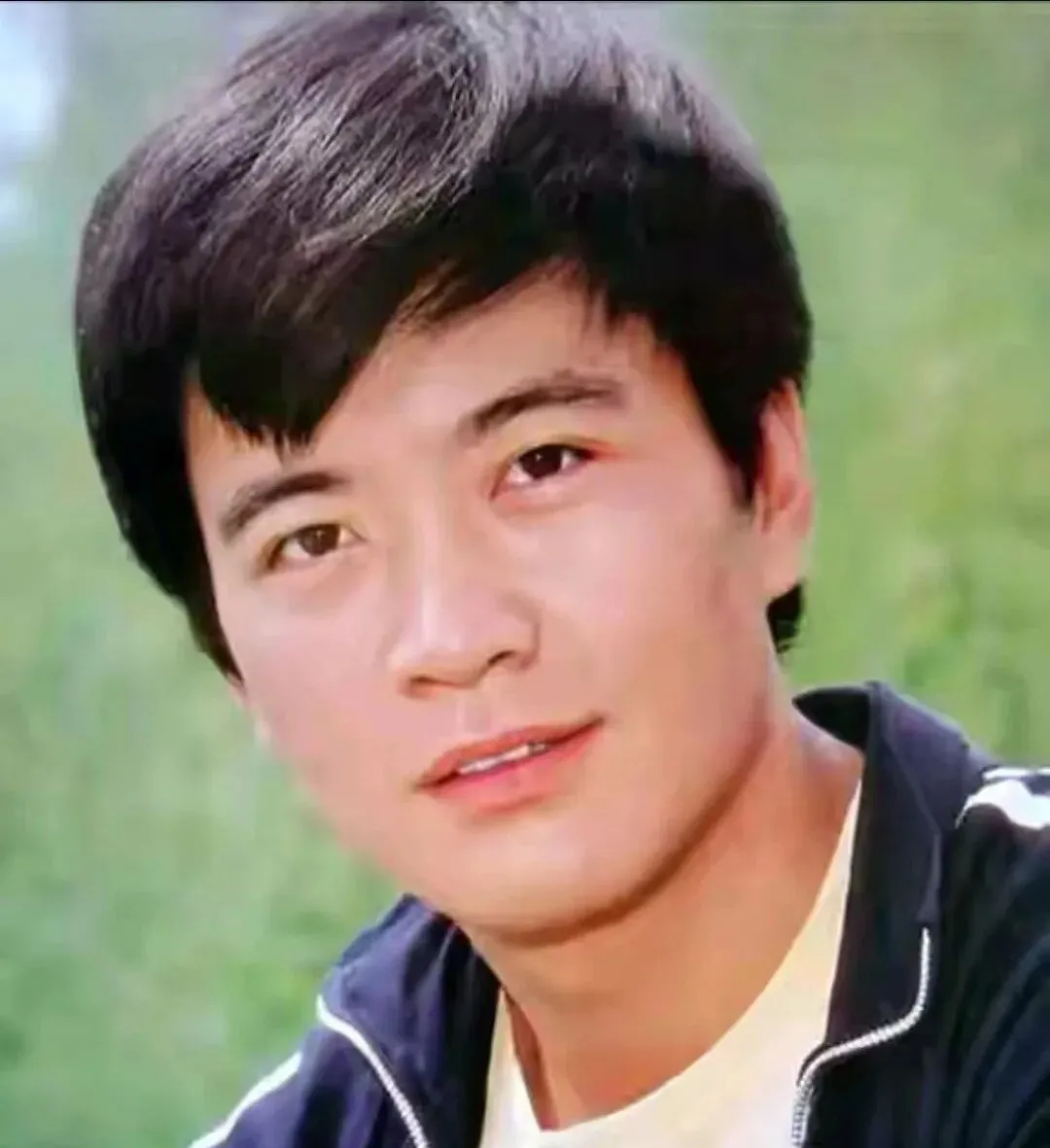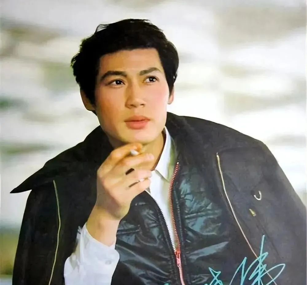 这张是典型的八十年代绅士范,细条纹西装贴肩贴背,打光压着轮廓,眉骨高,嘴角抿得稳,像 “沉默里有故事的人”,那时候的帅气不抢镜,走进人堆里也不刺眼,可一回头就记住了。
