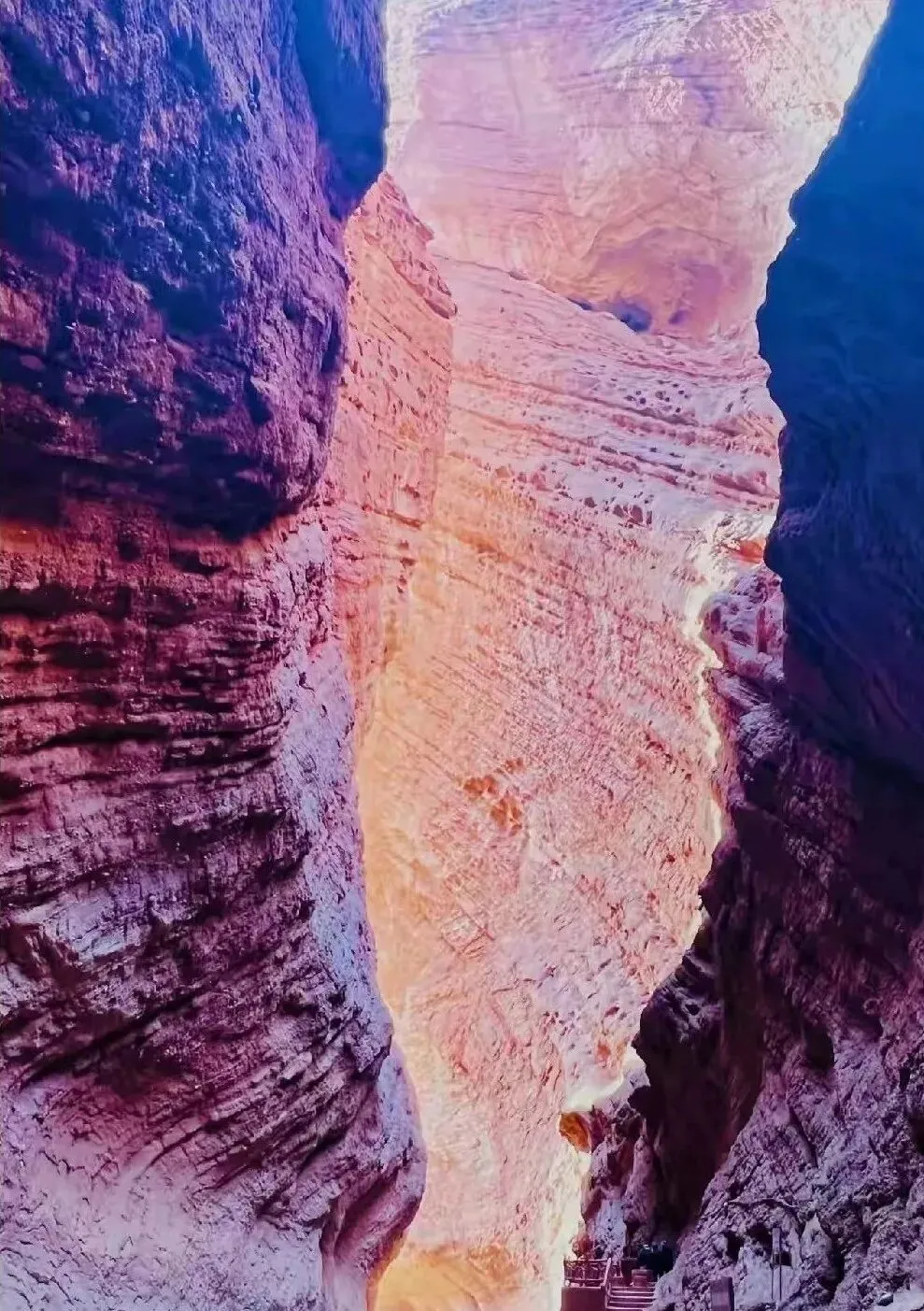 这个地方叫大峡谷,红褐色的巨岩像刀刻的纹路,谷底窄得只剩人过一线,阳光从天窗一样的缺口直直泻下,打在岩壁上像把旧铜擦亮了,脚下的木栈道一节一节往前挪,风进来又出去了,回声把人的心跳放大半拍。