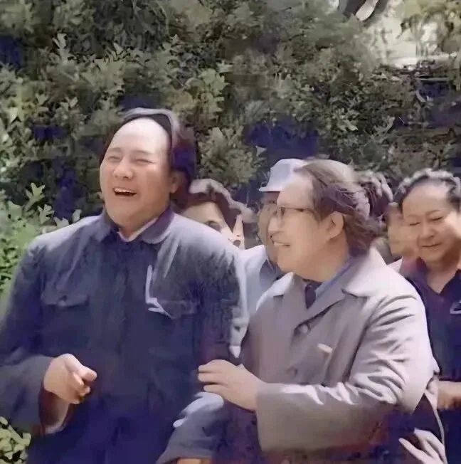 这张合影是西柏坡边走边笑的瞬间,灰呢大衣搭着手臂,身边的人扶着他往前挪半步,树荫碎碎地洒在肩上,笑声像从树叶缝里抖出来,以前出门拍照不讲究角度,不凹造型,抓拍才是最动人的,就一个字。