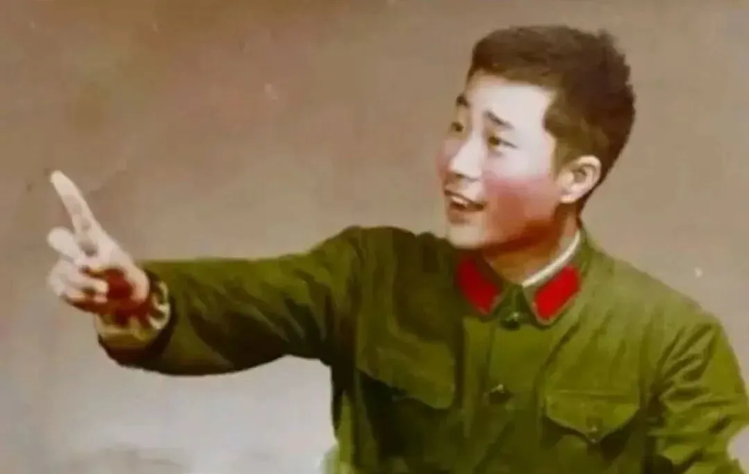 这张军装照里是年轻的小伙子,绿呢制服贴身板正,领口绛红一抹跳眼,他举着食指在比划,眉眼带笑,像在跟战友打包票,放心吧这事包我了,照片边角有点毛边,但那股子亮堂劲儿隔着屏幕都能看见。