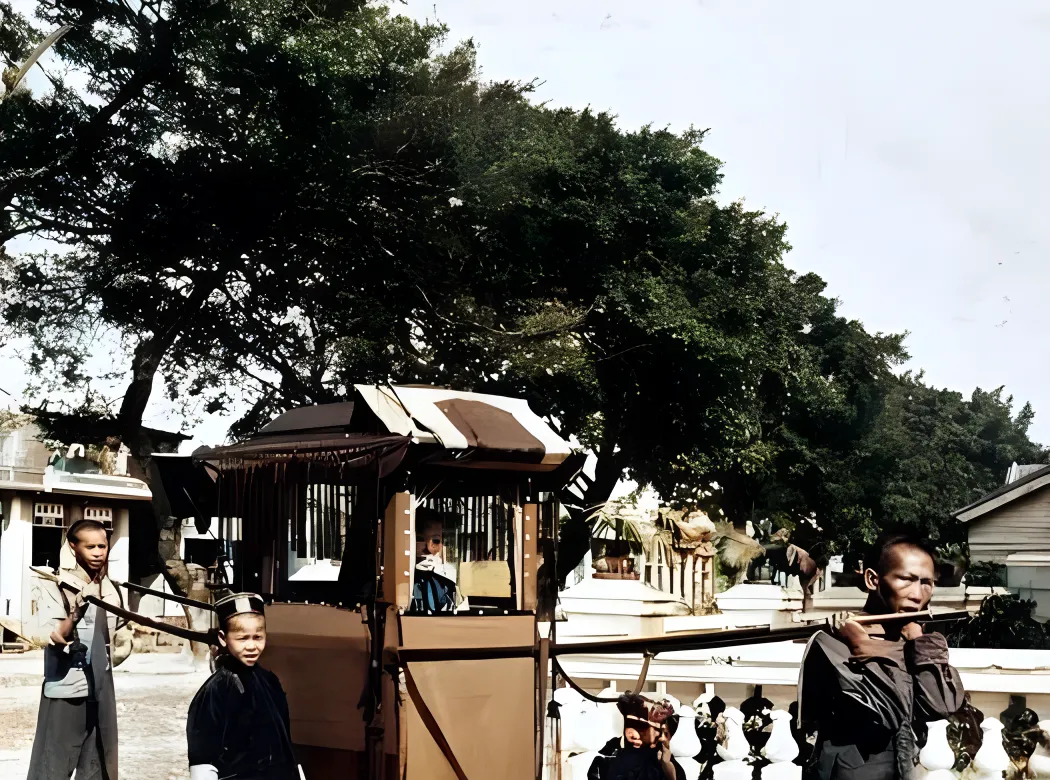 这个四方木屋一样的交通工具叫轿子,两根杠子穿身,从前从后抬着走,轿帘垂在窗沿,小厮跟在侧边扶着,两个轿夫赤脚,脚背的青筋凸着,步子踩在青石路上听得见咚咚声,妈妈说以前赶喜事,姑娘上花轿,轿沿上缠红绸,一路敲着锣,现在婚车一溜黑漆亮光,按喇叭也能闹腾,可风一吹,喜字是贴在车窗里走,不像轿子那样连街坊的祝词都能抬进门。