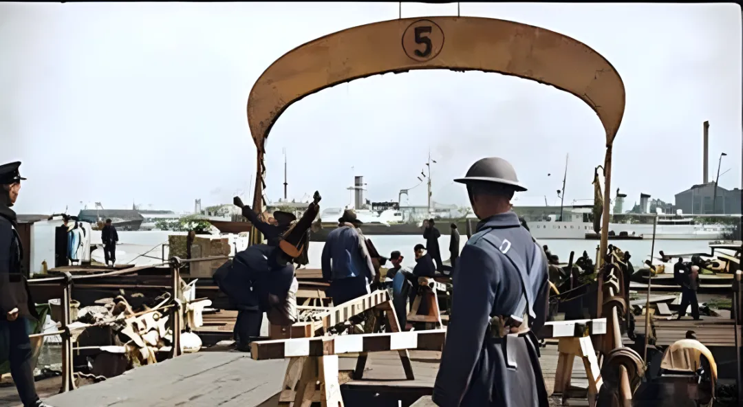 这个拱门上写着号数的地方叫码头栈桥,警察戴钢盔,腰后别着短棍,工人抬着箱笼过检,海风把袍角吹得直飘,照片里能闻见一点煤味和腥味,舅舅说他年轻时跑过外轮,最怕的就是临检,手心冒汗,护照夹在内袋里捏烂了角,现在过关滴一声闸就开,那会儿要抬头看人家眼色,低头看脚底的路。