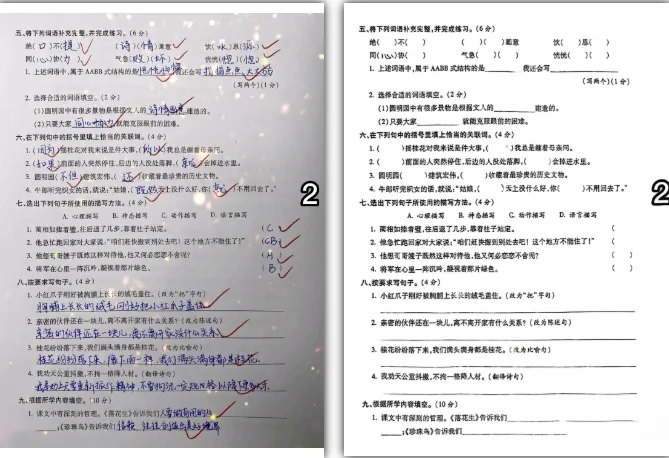 看下面这两张图,左边是有手写痕迹的试卷,右边是处理后的效果,还原得特别棒!