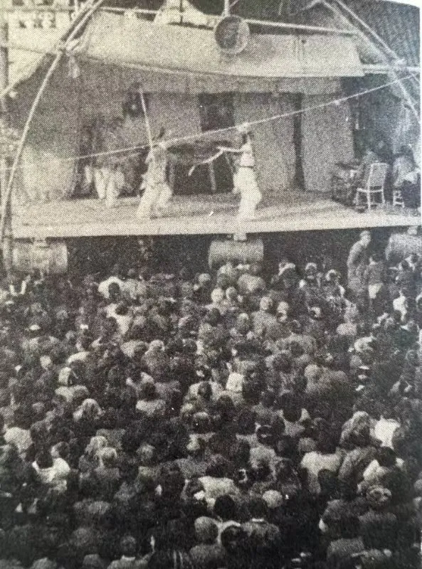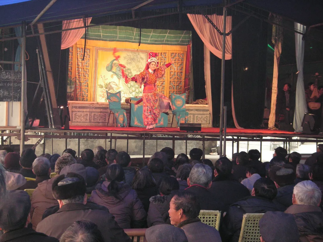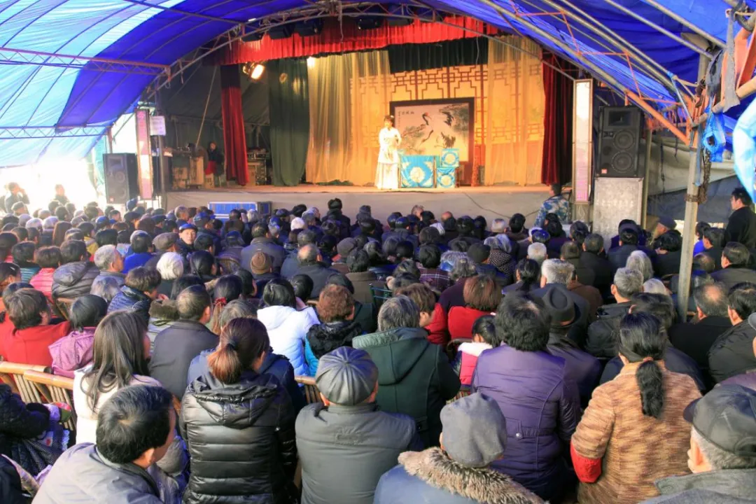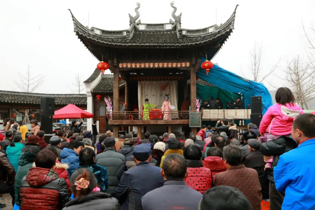 旧时,看社戏是百姓春节期间的必备节目。人们以竹簟为台篷,毛竹为台架,用水泥预制板拼搭成戏台,构筑出简易的演出场所。演出开始后,村民自带长凳围坐,目光紧盯着演员的每一个动作,认真观看戏台上生动的表演。