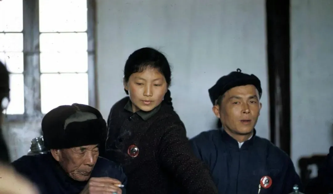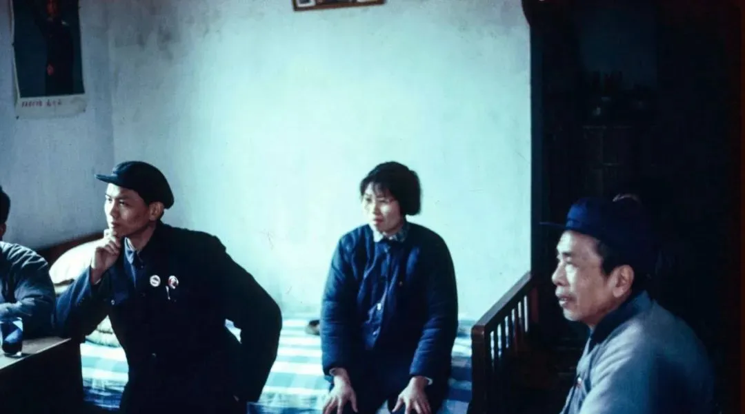 这回是大队部里开会,桌上摆搪瓷缸,女同志端着水壶来回穿插,大家胸前都别着像章,神情既紧又实在,定下的事就往下干。