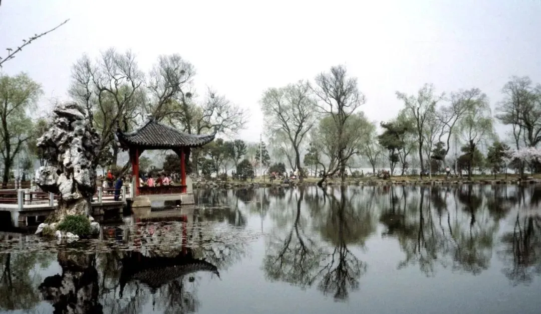 这片开阔的水面是蠡湖,岸上太湖石怪松相伴,小四角亭探到水里,倒影铺开像打碎的墨,奶奶说春天来这里吹风,柳絮糊脸也不恼火。