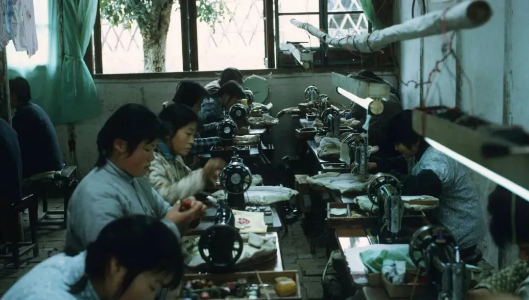 这排飞人牌缝纫机在赶锡绣活儿,机头转起来嗒嗒嗒,线团在指尖一滑就过孔,绣框上压着绵布,花样从底稿里一点点冒出来,师娘抬眼说别看是小活,抠出来才见真章。