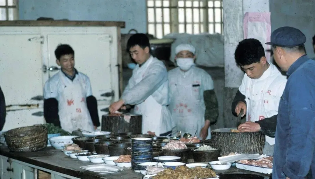 这块木墩子切起菜来咚咚作响,厨师白大褂上沾着油点子,碗碟排成沟,一手抓葱一手抡刀,掌勺的冲着我笑,说想拍随便拍,咱这儿干净得很。