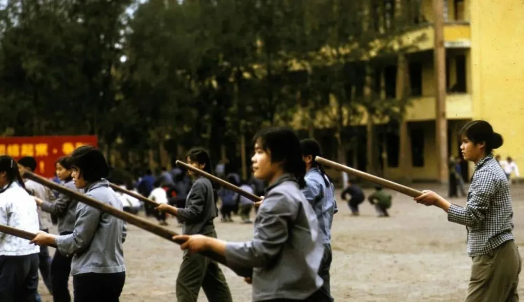这个长条木棍在操场上叫木枪,女生们列成横队练拼刺,口号一喊步子就整齐了,那时候体育课不光跑圈,还有这股子英气,现在想想也挺带劲的。