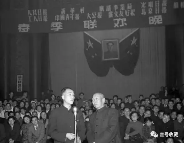 ▼ 1956年春节,侯宝林、郭启儒,在春节联欢晚会上说相声。