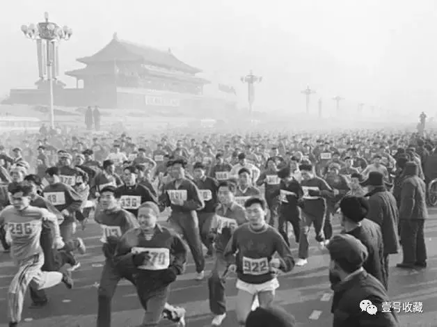 ▼ 1960年1月30日,一年一度的北京春节环城赛跑,人们从天安门广场开始跑起。
