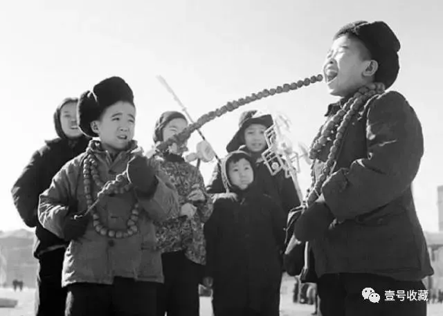 ▼ 1961年春节,北京逛厂甸庙会,孩子们最感兴趣的是大串糖葫芦。