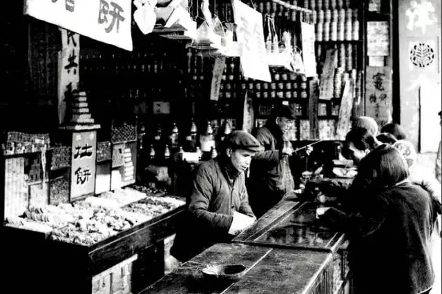▼ 商场卖的商品也越来越多样化,下图是八十年代中期春节时的北京王府井,人们在抢着买平时买不到的糖果。