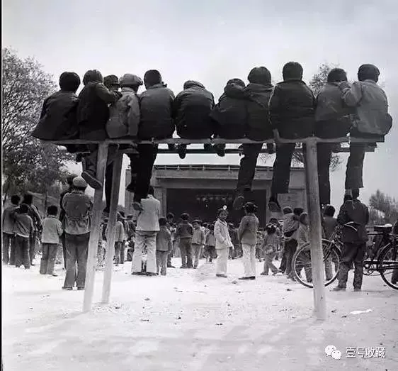 ▼ 以前没什么玩的,小孩坐在双杠上看唱戏。