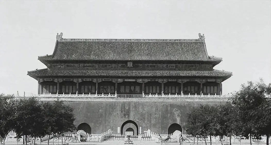 这个高脊重檐的城门叫天安门,城台厚重,栏板绕一圈,远看像一只稳稳趴着的狮子,奶奶说以前赶庙会路过这儿,队伍跟着锣鼓点挪,抬头看匾,心里就直犯怵。