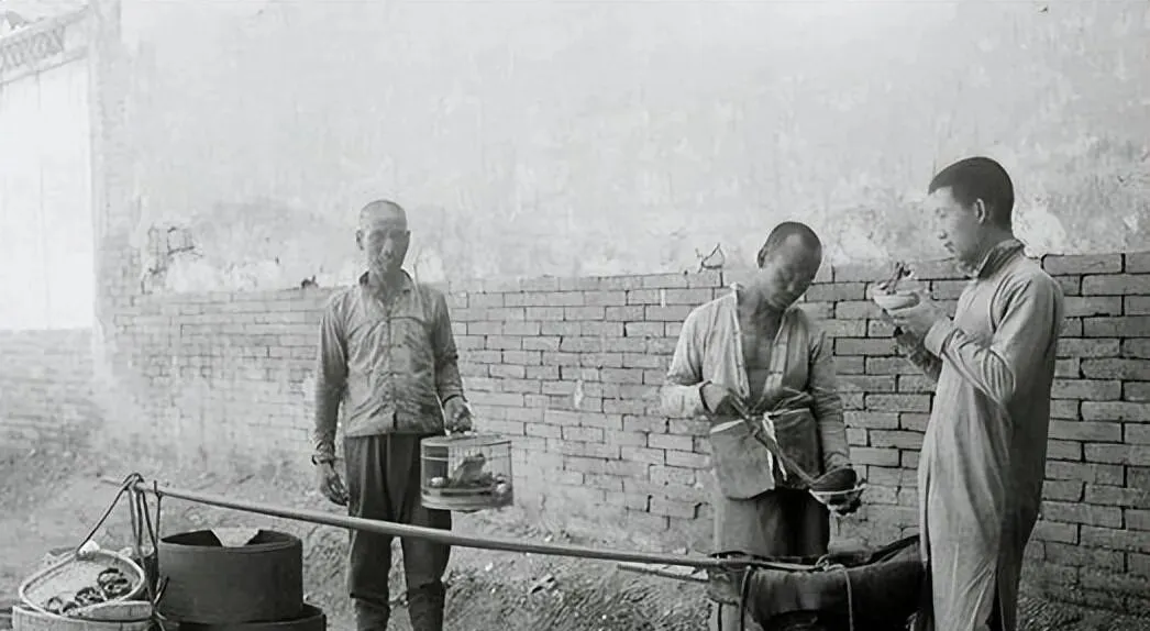这根扁担挑着锅灶叫食担挑子,前头锅里吱啦作响,后头箱子里码着碗筷,走街串巷靠肩膀吃饭,客人喊一声师傅,这边就架锅起火,现炒现卖,利索得很。