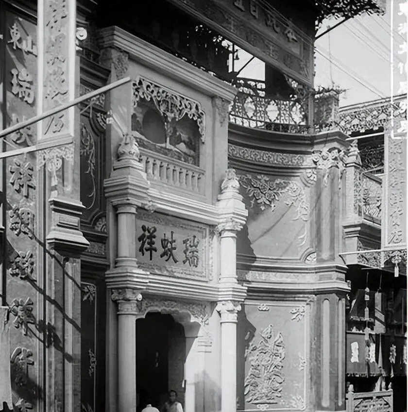 图里这幢西式楼叫洋楼,立柱花饰都不含糊,拱券一连三个,窗栏一字排开,旧城里忽地冒出这么个新样子,当时人都说时兴玩意儿来了。