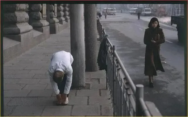这张照片最能.体现老.上.海的市井气息。一个人弯.腰在街边做着什么,.旁边还有行人经.过,这种最平常不过的生活场景.,如今再.也.难以复制了。那时候.的上海,生活节奏慢,邻里之.间都认识,街头巷.尾充满了人情味。