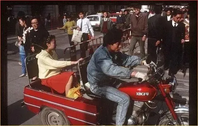 这位骑着三轮车的小.贩,.车后装着满满的货物,这是.那个年代最常见的谋生方式。没有.外卖平台,没有电商,.所有的生意都靠.着这样走街串巷地吆喝,虽然辛苦,但每一分.收入都.实实在.在。