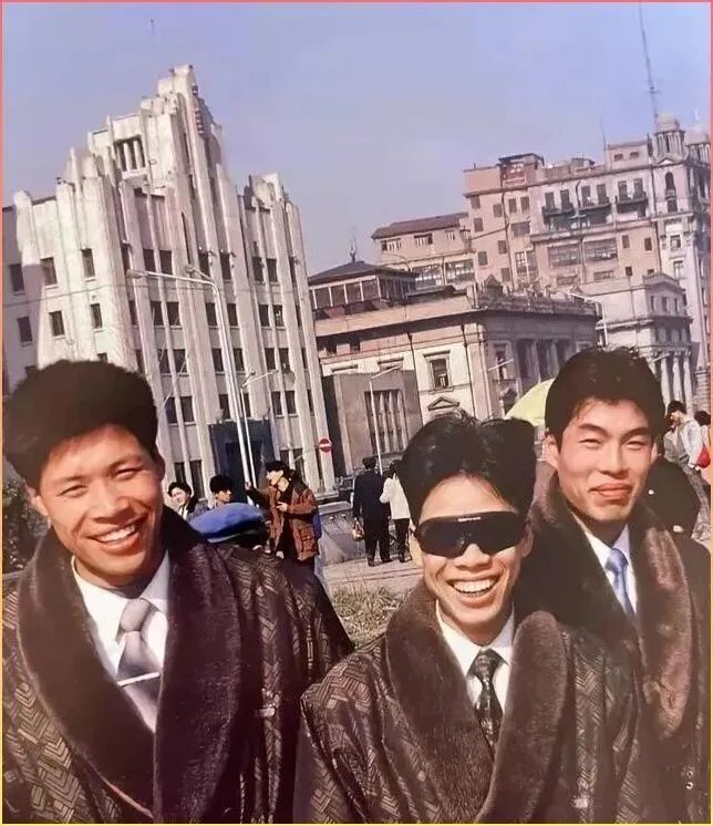 看这几位年轻人的穿着打扮.,.皮夹.克配墨镜,在当时可是相当洋气的装扮了!那.个年.代的上海青年,已经开始追求个性和时.尚,这份自信和从容,在照片里都能感受得到。背后的外滩建.筑群,见证了多少代上海人的.青春.岁月。