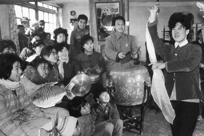 1985年春节,辽宁营口的农民正在表演节目。当年,过年的气氛还是很浓的。