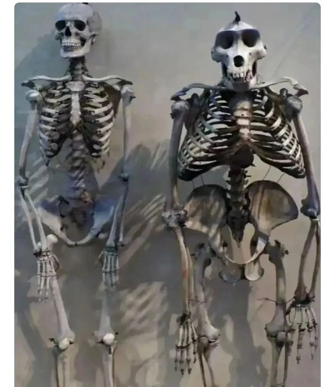 这两具并排站着的骨骼,一个是人一个是猿,骨盆宽窄一看就不一样,脊柱的弯曲也各有姿态,肩胛骨挂得更靠外,像随时要攀树的架势,单论胳膊的劲儿人可比不过它,可说到底,脑袋里这点主意才是分水岭,爷爷叮嘱我,别拿体能逞强,靠脑子吃饭更踏实。