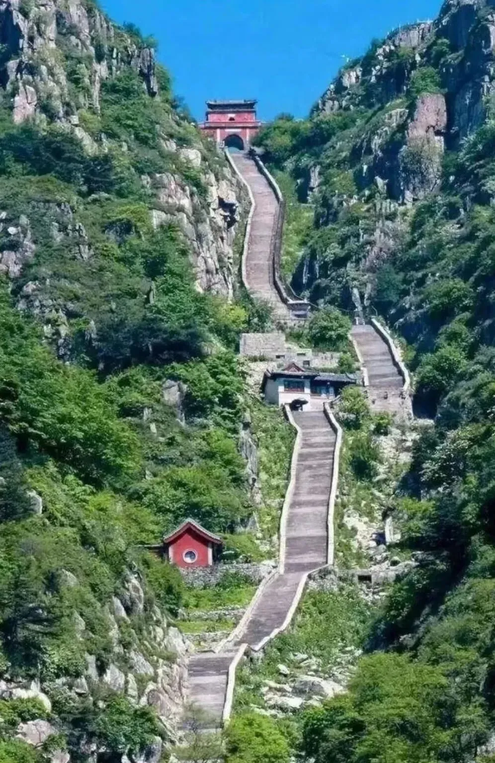 这条直挺挺的石梯就是上山的脊梁,青灰的台阶贴着山势,一会儿陡一会儿缓,红墙小亭点在两侧,像给人打气的补给站,小时候爬到一半就嚷腿抖,爸妈笑着说再上五十级就能看见门,山不阻拦人,停的是自己的脚步,如今索道一搭,省了脚力,可那股一步步啃上去的劲儿,也就少了。