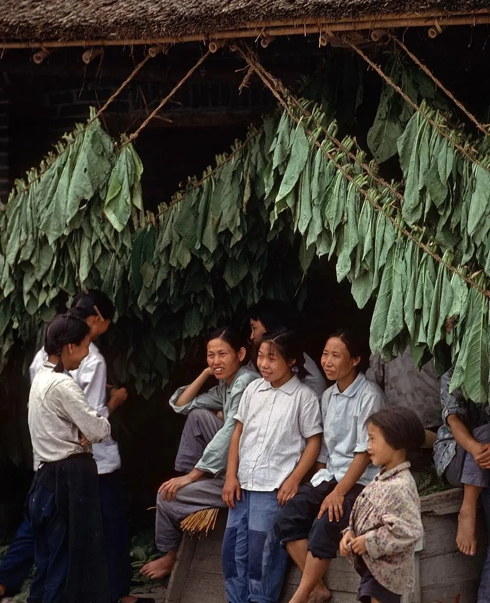 这个满屋檐的绿叶叫烟叶串或菜叶串,麻绳穿过粗梗,成排垂下来挡阳光,女人们挤在木板凳上唠家常,手指上还夹着秆子,风一吹,叶片摩挲沙沙响,像夏天的扇面在耳边晃。
