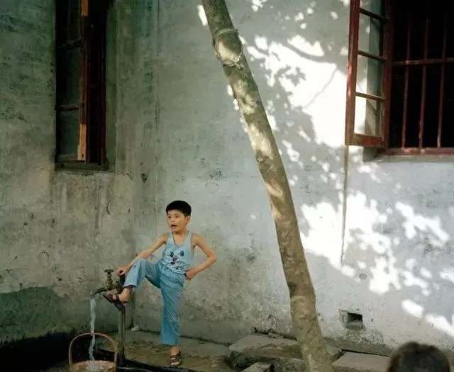 这个铁家伙就是院里的公用水龙头,锈红的阀门一扳,水花冲在铝盆里叮当作响,小孩抬脚往上杵,嘴里喊着凉快咯,太阳从槐树缝里筛下来,地上碎碎的光像撒了一地芝麻。