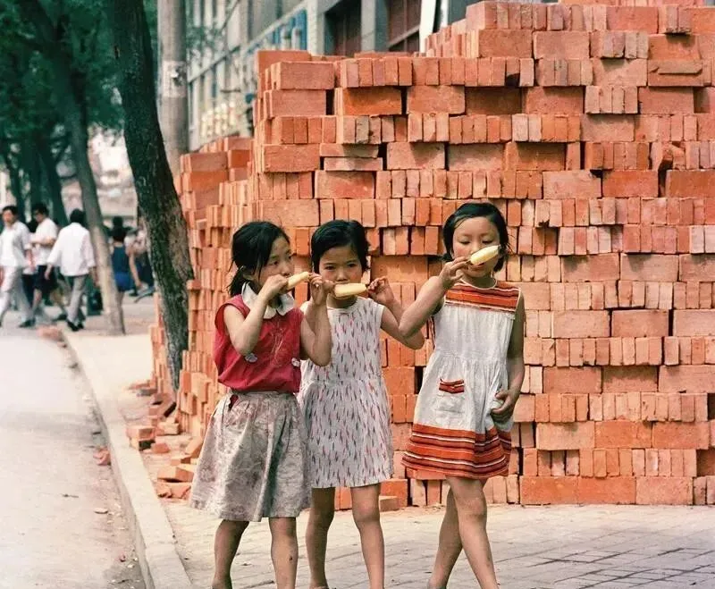 这三位小姑娘人手一根奶油冰棍,走到砖堆边上齐刷刷咬一口,裙摆是浅色碎花,手心被冰凉得直哆嗦,那时的甜,便宜也真,化得快,喊着别滴到鞋上,回家妈要念叨。