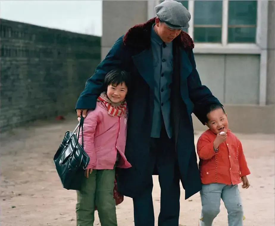 最后这个合影最顶用,爸爸大衣厚得像被褥,左手牵着姐姐的书包,右边弟弟叼着糖块往上蹦,风从巷口钻进来,三个人挤在一块儿,以前没有合成滤镜,笑是真笑,冷也是真冷,拍完回屋里烤炉火,脸上红扑扑的正合时。