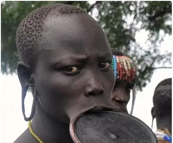 这个看起来有点惊心的圆片,叫唇盘,木盘或陶盘都用,直径能到巴掌大,部落里姑娘把它当成美和身份,外人看不懂,但人家看我们穿耳洞也摇头,世界就是这样,你有你的规矩,我有我的习惯,彼此看一眼点点头就好。
