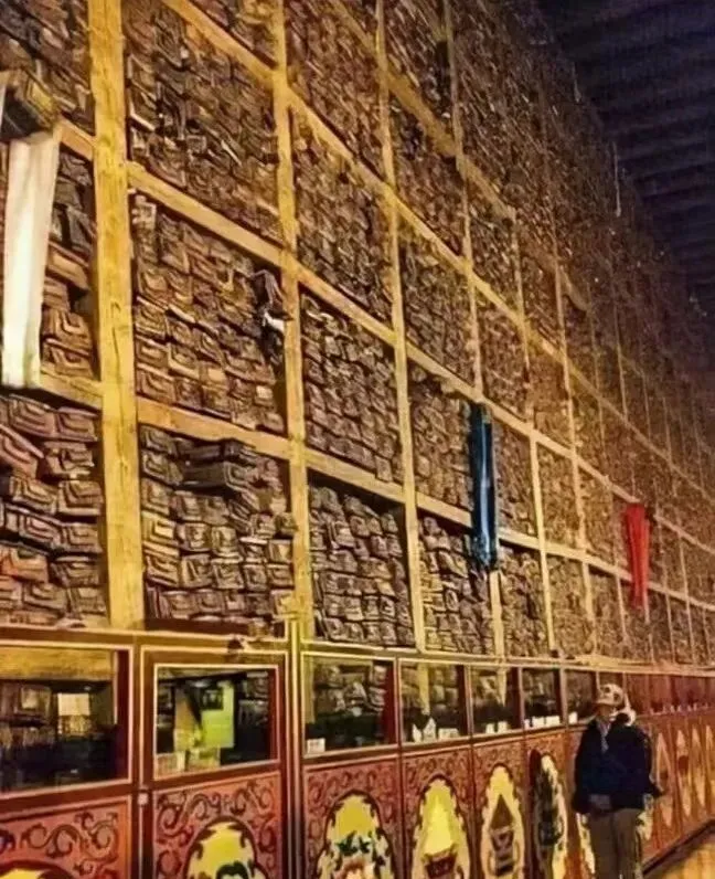 这一堵像蜂巢的墙,其实是经书架,格子一层压一层,包着布的卷册塞得满满当当,站在底下的人像一粒芝麻,爷爷说里面很多是手抄本,灯一盏纸一页,抄错了就重来,现在我们打字飞快,错了按退格,手指头一弹,力气就省掉了。