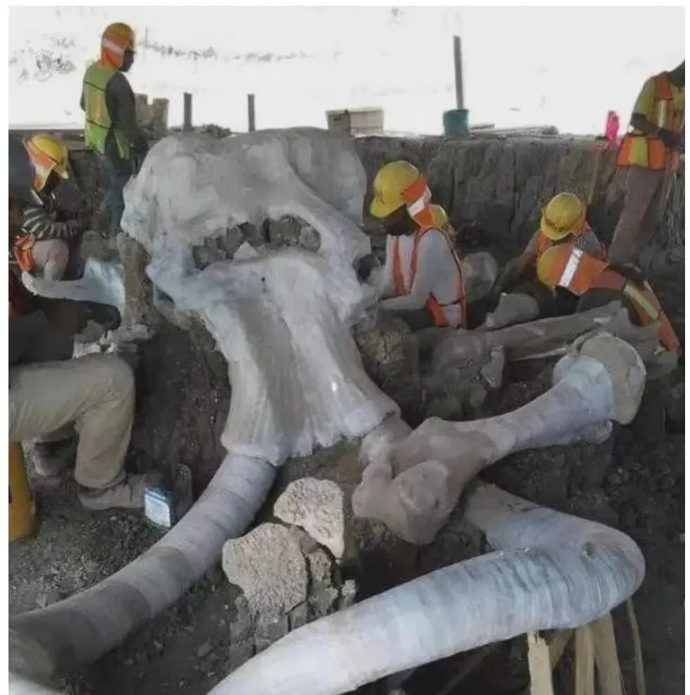 这个像被白布包着的大件,是猛犸象化石的颅骨和象牙,工作台旁边的刷子小到像玩具,工人一下一下把沙粒刮走,妈妈说别看象牙盘那么大,做文物修复的人心都得捏得小小的,动一点都要喘口气再下手。