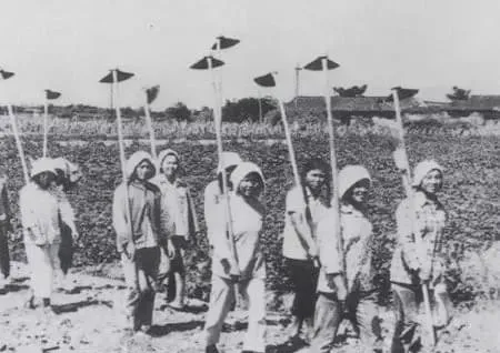 这支队伍叫突击队,锨头排得像旗子,姑娘们裹着头巾往地里去,走起路来沙沙一片,脚步急,心更急。