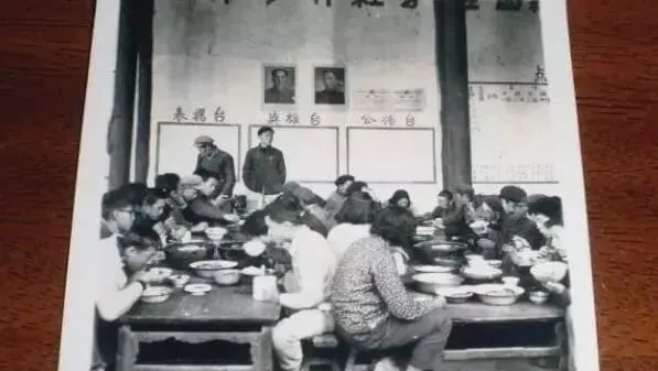 这地方叫公共食堂,黑板上写着奖励台和批评台,饭盆一挨着一,勺子在铝锅里“当当”响,奶奶说那时开饭号一响,碗筷比人快。