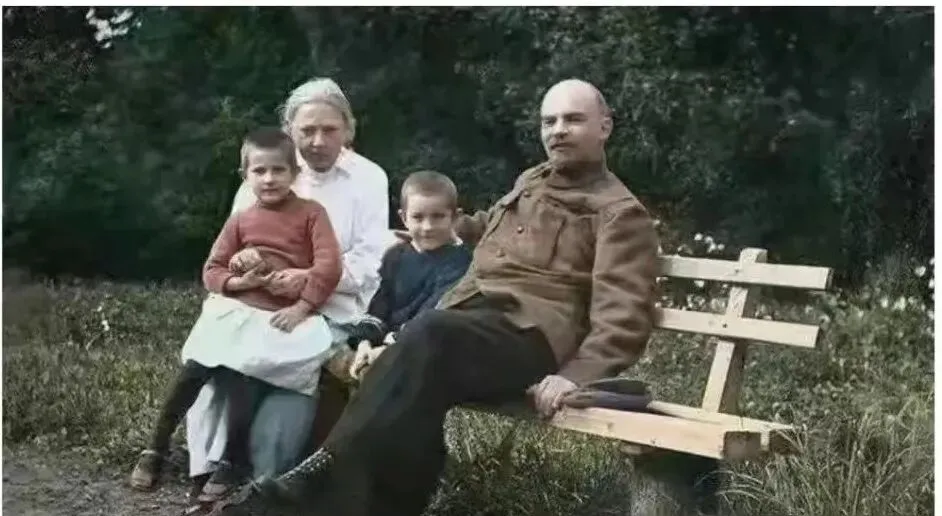 这个坐在公园长椅上的四口人叫午后停靠,木椅子板条新,男主人军装泛着旧铜色,两个孩子粘得紧紧的,草地里白色小花一簇簇,风一过就晃脑袋,妈妈说看这种合影最容易想家,哪怕不认识,也会替他们在心里找个地址。