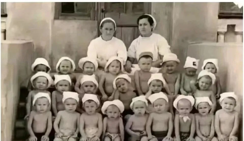 这一群小脑袋排得整整齐齐的叫托儿所大合照,头巾像一朵朵小云,把腮帮子衬得圆圆的,有的笑得露牙,有的鼓着嘴瞪镜头,老师坐中间,手搭在孩子肩上,稳稳的,那时候拍完要等显影,现在手机一按就能重来十次,可那份一蹴而就的认真劲儿不太找得回来了。