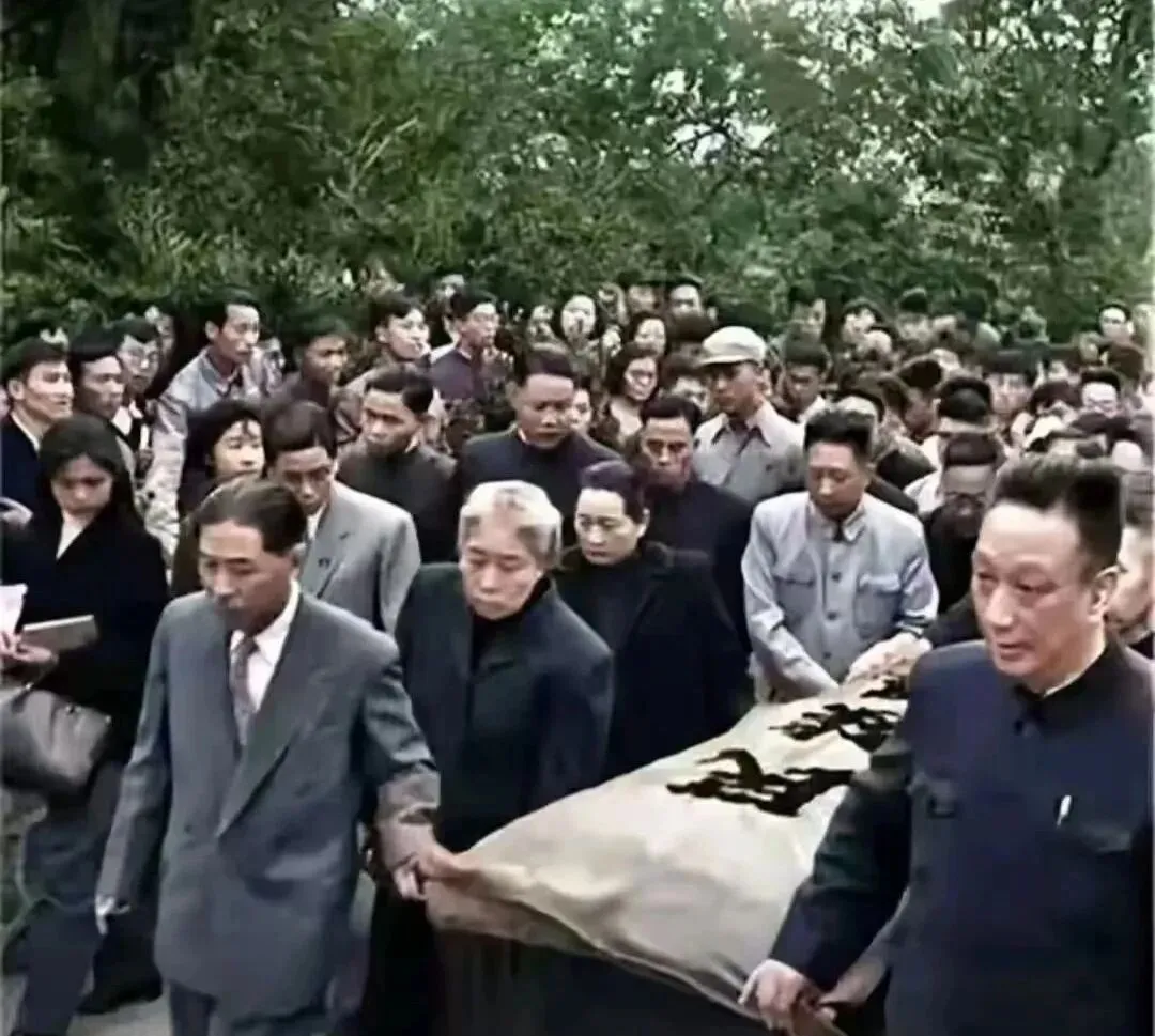这个缓慢行进的场面叫送别长巷,扶灵的人低着头,锦旗压在棺椁上,黑色的字在风里沉着,路边站满了人,表情里都收着,脚步不急,树叶也不响,只有衣襟发出轻轻的摩擦声,人生最重的一步,原来是这么走的。