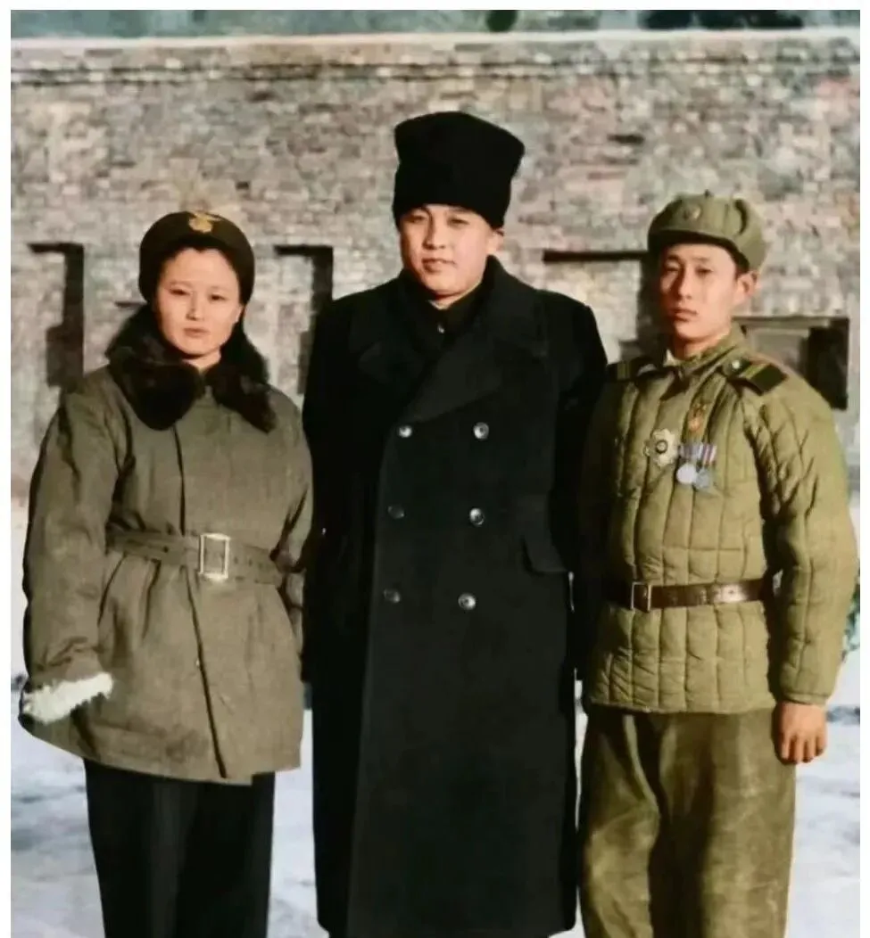 这张三个人并肩站着的叫冬日留念,棉帽压得低,双排扣大衣厚得能挡风,军装上几枚勋章一闪一闪,背景城墙起皮发白,地上有薄雪的印子,站在中间的把手插在口袋里,肩膀往前一送,像替两边的人挡风。