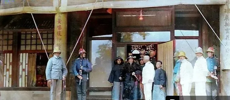 这个门脸儿叫仪门,一对木柱贴着长条楹联,门帘半挑,里头灯球吊着泛红,外头人等分两侧,短身褂配长裙裤,脚下多是布鞋,守卫手里攥着长身枪,枪带压在肩窝里不晃不跳,最显眼的是那几顶圆檐硬帽,亮得晃眼,妈妈看了笑,说现在开会发胸牌,那时看帽子就行,谁是什么差事一目了然。