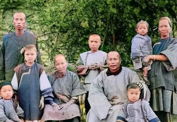 这一群人站在坡上,孩子挤在大人身边,脸上有风吹日晒的痕,发辫有的垂着有的盘起,都是当时常见的“阴阳头”,镜头一对准,神情就紧起来了,谁也不笑,像在等一声口令,二舅说以前照相少见,见了镜头不知摆哪种表情,干脆板着脸最稳妥,和现在手机一举就“咔嚓”不一样,过日子的神情也写在脸上,稳、苦、但不服软。