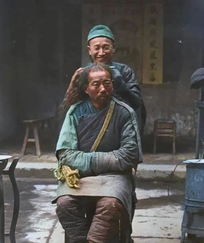 这个手艺人叫剃头匠,褡裢里插着木梳、刮刀、耳勺,顾客一坐小凳上,肩上搭条灰布,剃头匠先用清水抹顺,梳子在发缝里唰唰直跑,刮刀贴着鬓角走,刀背一翻就把碎发敲在地上,爷爷最爱加一句掏耳朵,耳勺轻轻一勾,痒得人直打哆嗦,他笑说这叫舒服钱,现在理发店灯一开风一吹,十分钟利落,可那点慢悠悠的服务劲儿,真是找不回来了。