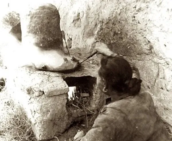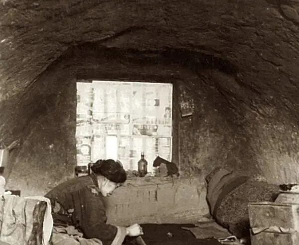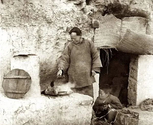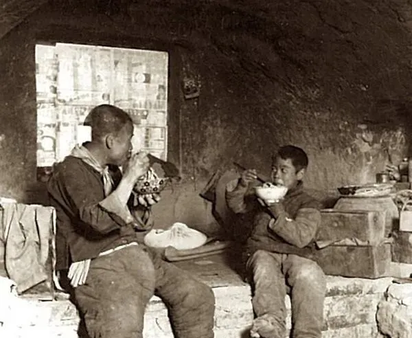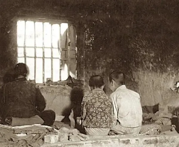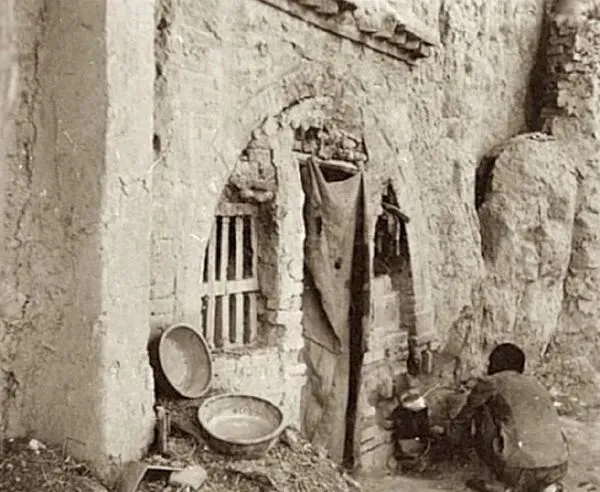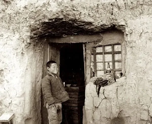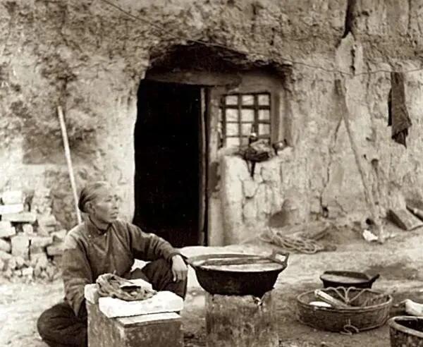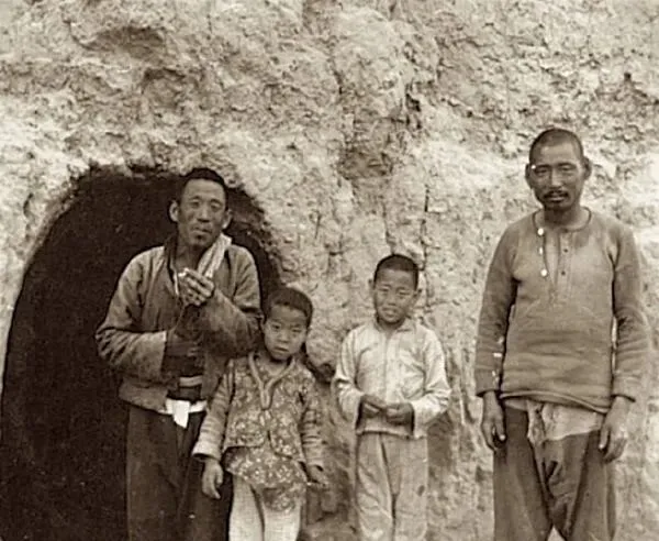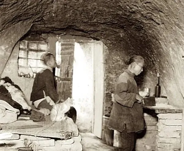 1939年山西临汾老照片 住在窑洞中的贫困人家生活全记录。
