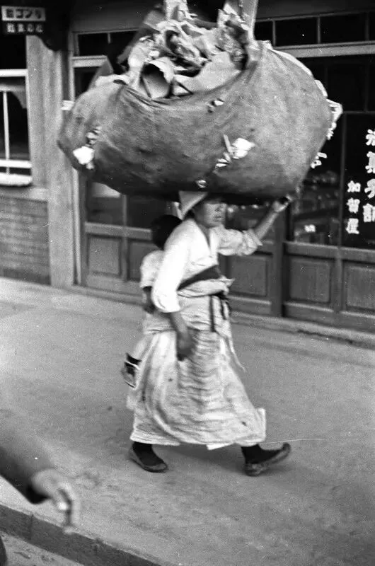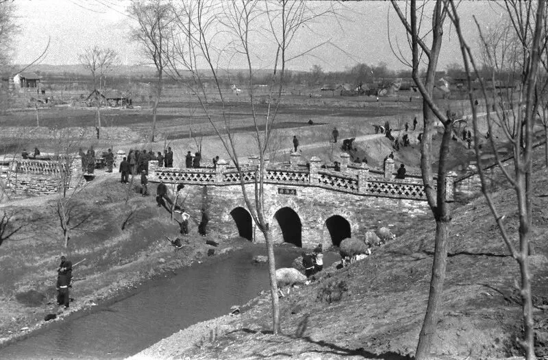 民初彩色老照片:乞丐丛中的地主婆;村庄织女;独轮车夫等客人;河北邯郸的大名府古城