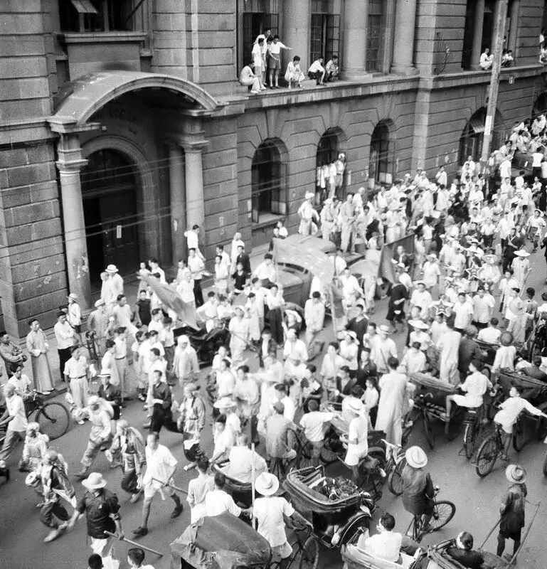 上色老照片:日伪军挨家挨户查“良民证”;南京大屠杀的首犯;报纸的排字室;五卅运动