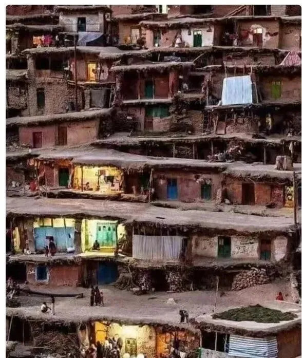 这片连在一起的台阶屋顶在伊朗山区很常见,上一家屋顶就是下一家院子,夜里灯一盏盏亮开,炊烟贴着墙往上走,屋顶和街道合二为一,第一次见到,真有点恍惚。